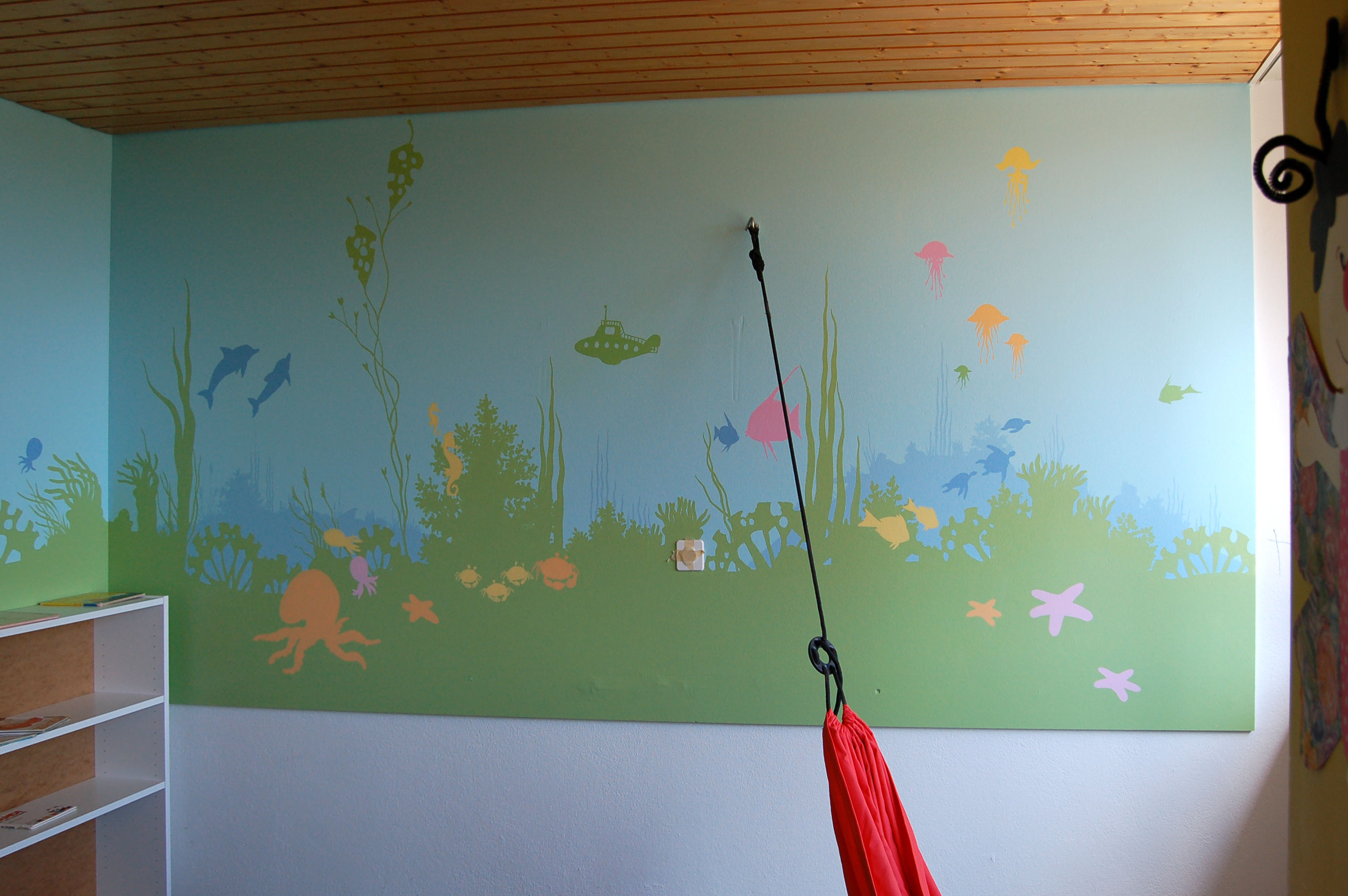 Troisième projet d‘Anouk Foundation à l’Ecole Auguste Buchet, cette fois dans la filière 2, pour enfants autistes. Un tel projet peut être source d’angoisse pour les enfants, nous sommes donc d’autant plus contents qu’il se soit très bien déroulé, en faisant même la joie des pensionnaires. Les enseignants ont proposé comme thème les saisons. Chaque classe est une saison, les couleurs sont très calmes, les motifs en silhouettes. Nous avons fait un outil de travail pour les enseignants. A côté de chaque classe, il y a la place pour les photos des enfants et des enseignants.Dans le box de relaxation, décoration sur un thème apaisant : l’eau.
