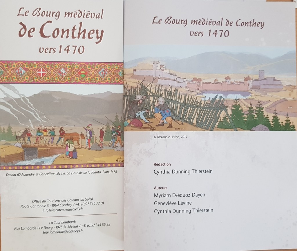 En 2022, l’Association des amis du patrimoine contheysan a réalisé une promenade du Bourg, ainsi qu’un panneau montrant le Bourg en 1475, à la veille de la Bataille de la Planta. Geneviève Levine et moi-même avons participé à la conception des textes, et des illustrations.