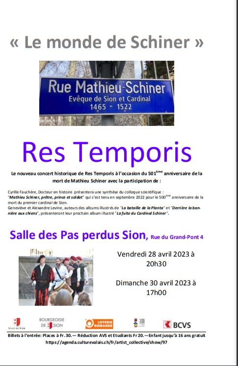 Très motivant de sentir un tel élan : à six mois de la parution de mon prochain album illustré, sur le Cardinal Schiner, l’Ensemble Res Temporis propose le concert « Le monde de Schiner ». Des oeuvres polyphoniques composées entre 1490 et 1520 nous transporterons dans l’univers musical du début du XVe. Une merveille à découvrir.