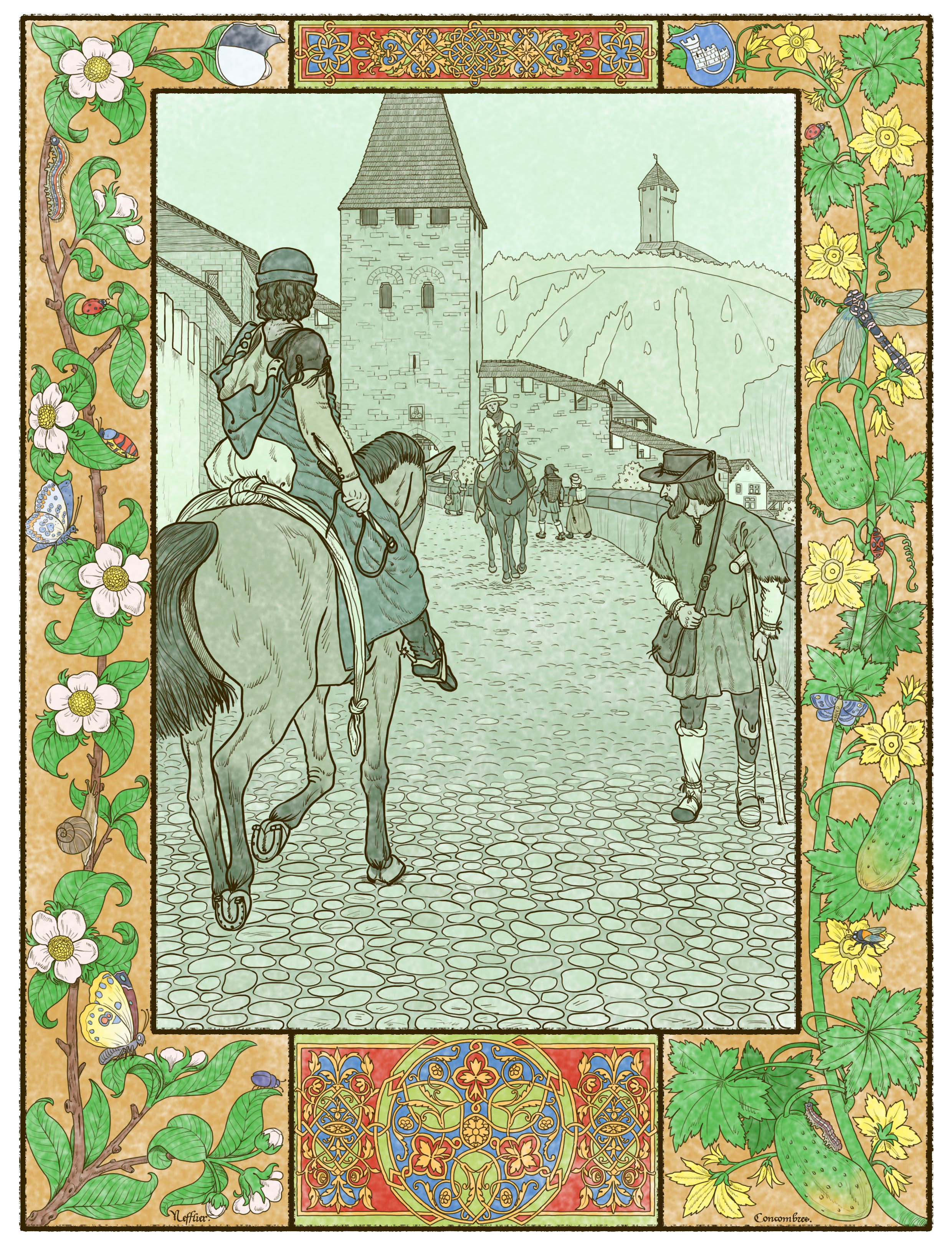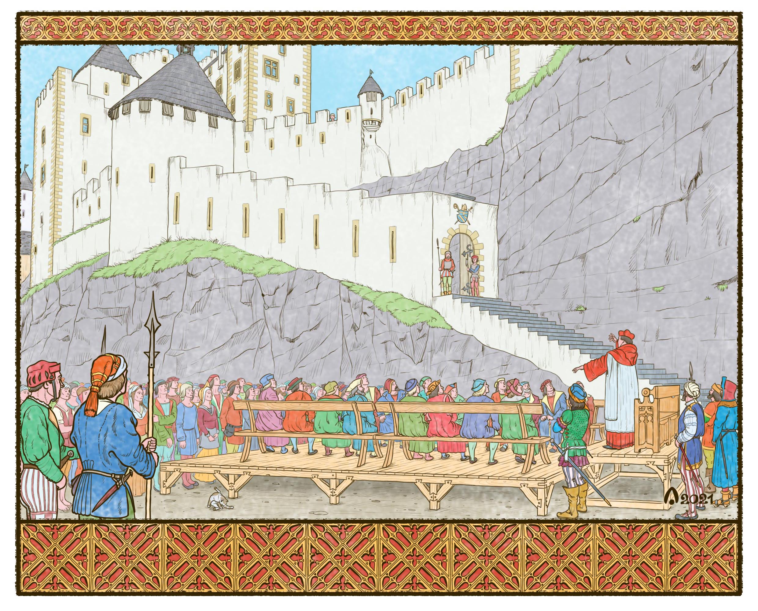Mes illustrations accompagnent les visiteurs, pour une plongée plus concrète dans le XVe siècle sédunois. La vie de Schiner nous emmène quant à elle bien au-delà, aux querelles entre Confédérés, au coeur des guerres d’Italie, aux alliances et mésalliances de tous les puissants du continent.